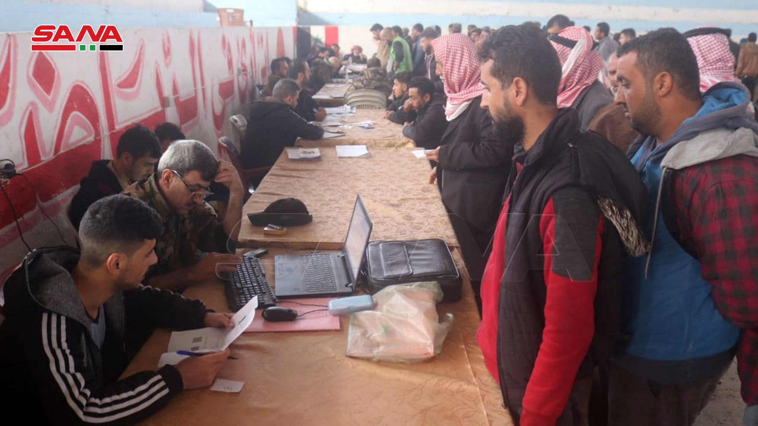 Deir Ezzor-SANA / Le processus de la régularisation de la situation des civils recherchés, des déserteurs militaires et des personnes qui ont échappé aux deux services militaire et de réserve des habitants du gouvernorat de Deir Ezzor s’est poursuivi pour le 6e jour consécutif.
