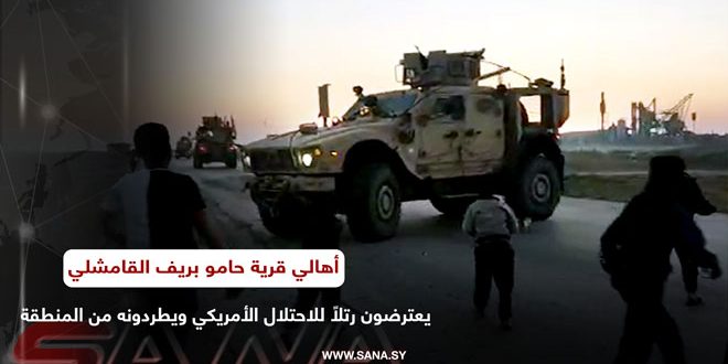 Les habitants du village de Hamo dans la banlieue de Qamichli interceptent un convoi de l’occupation américaine