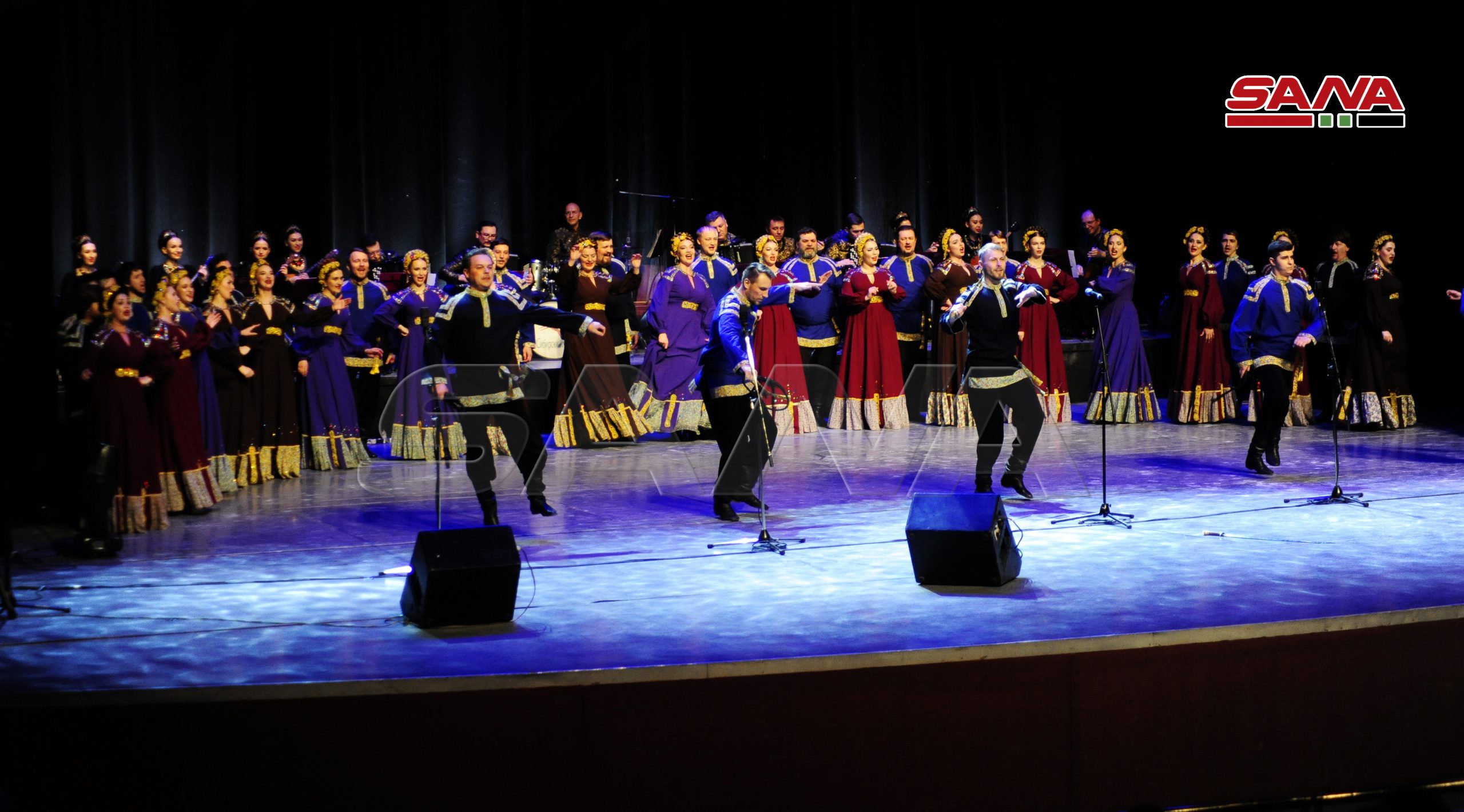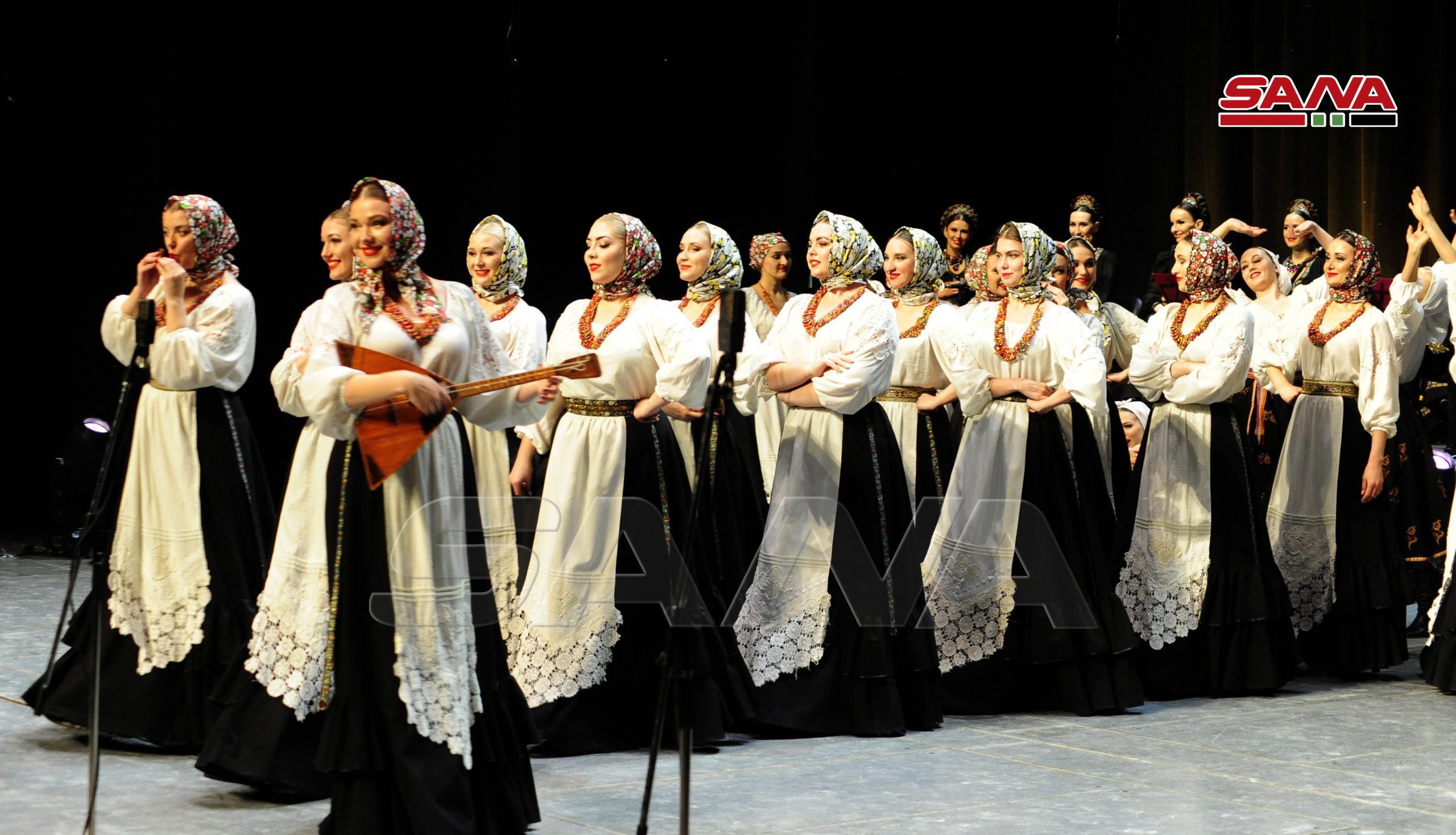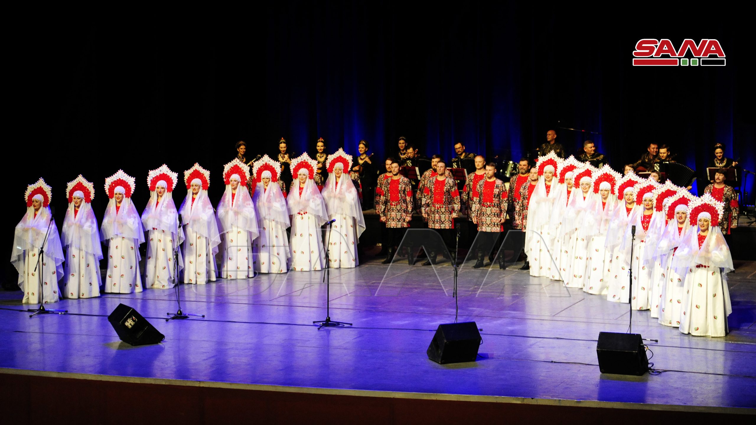 Damas-SANA/Le Chœur National Académique Folklorique Sibérien a participé aux activités des Journées de la Culture syrienne, organisées sous le titre « Culture, Authenticité et Renouvellement » par des pièces de danse folkloriques.