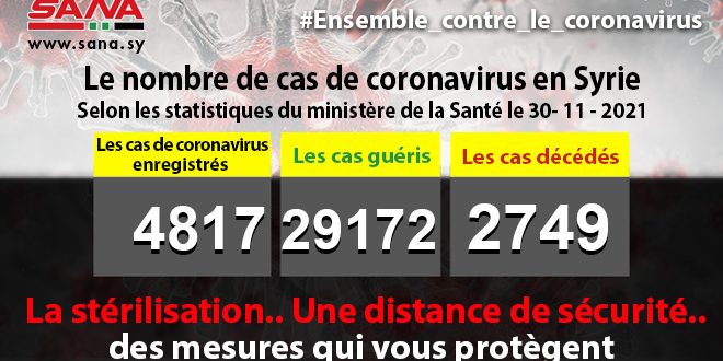 Dans un communiqué, dont une copie est parvenue à SANA, le ministère a fait noter que le bilan des cas de coronavirus enregistrés jusqu’à présent en Syrie avait atteint 48170, dont 29172 cas de guérison et 2749 décès.