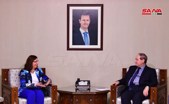 Damas -SANA/Le Ministre des Affaires étrangères et des Expatriés, Fayçal Miqdad, a discuté aujourd’hui avec la Secrétaire exécutive de la Commission économique et sociale pour l’Asie occidentale « CESAO », Rola Dashti, des domaines de coopération entre le gouvernement syrien et la CESAO.
