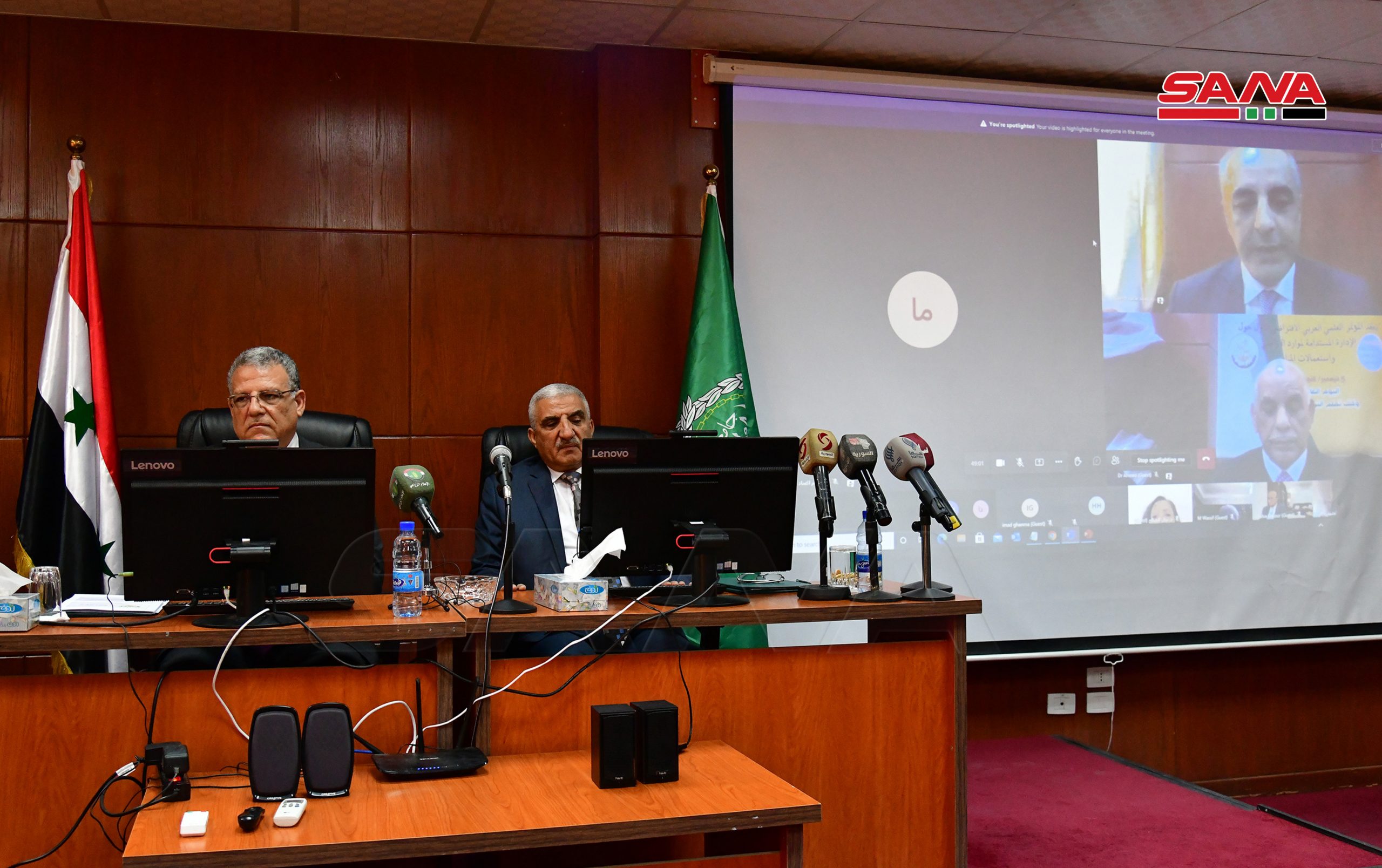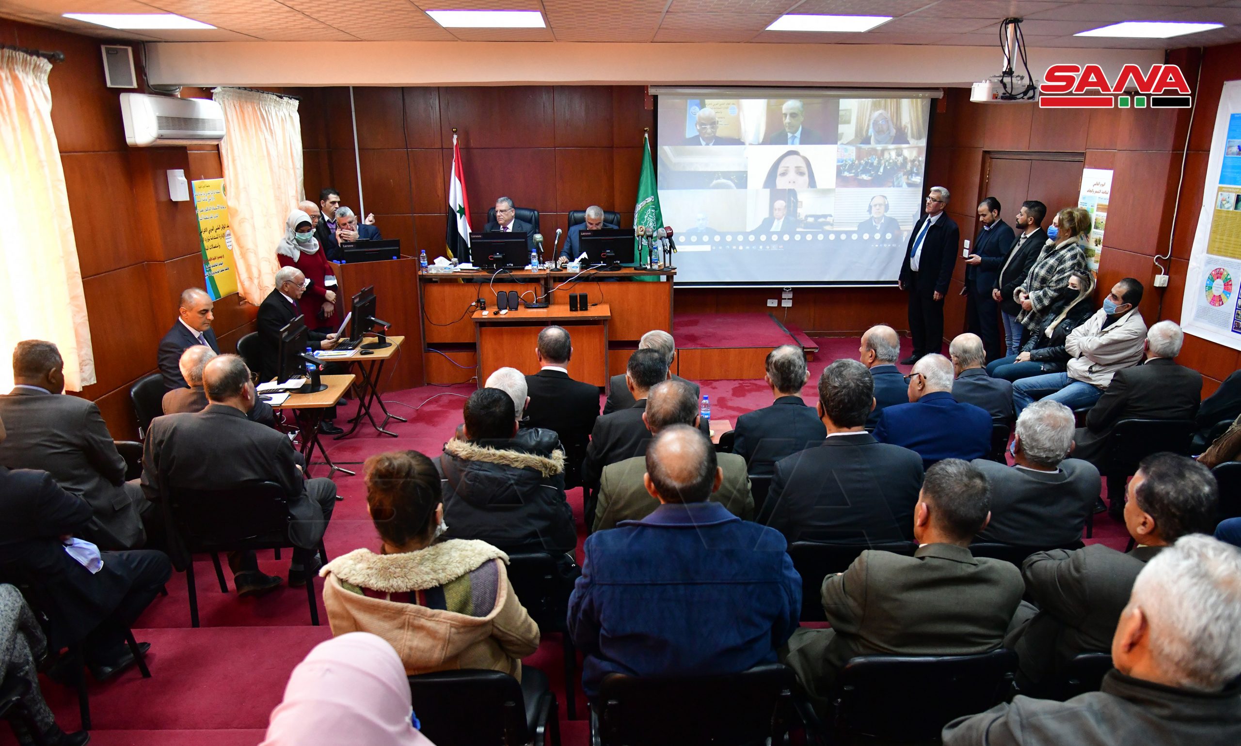 Banlieue de Damas-SANA/A l’occasion de la Journée mondiale du sol, et avec la participation de 16 Etats arabes, le Centre arabe pour l’étude des zones sèches et des terres arides (ACSAD) a tenu aujourd’hui la 1ère conférence scientifique arabe virtuelle sur la gestion durable des ressources des terres et l’utilisation de l’eau, en présence du ministre de l’Agriculture et de la Réforme agricole, Mohammad Hassan Qatana.