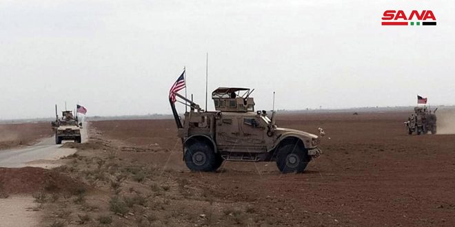 Hassaké-SANA/Un point de contrôle de l’armée arabe Syrienne a intercepté un convoi appartenant à l’occupant américain à la périphérie du village de Salhiyeh au nord de Hassaké, lors de sa sortie de la ville de Qamichli.