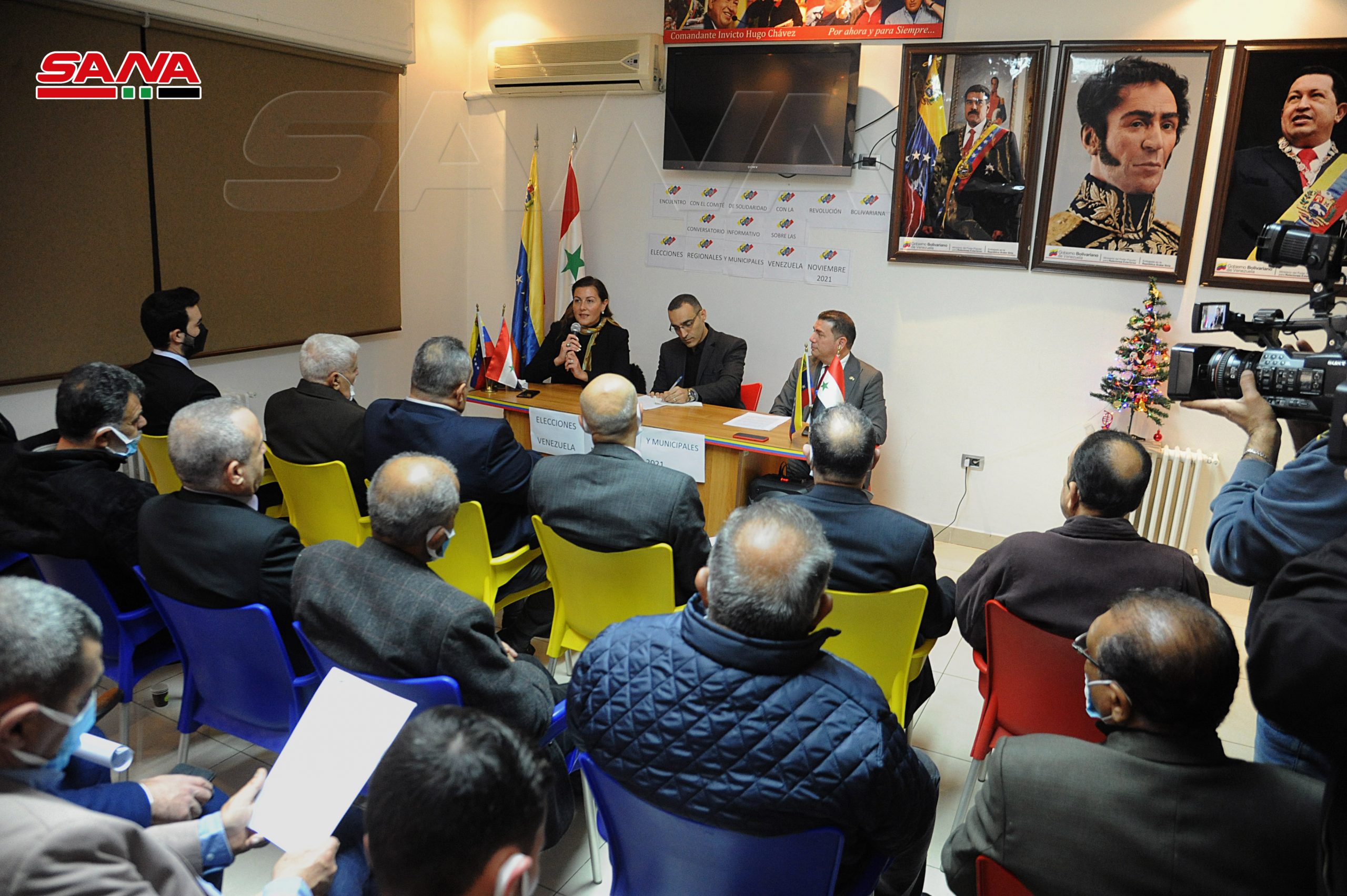 Dans une déclaration en marge d’un colloque spécial sur les élections municipales et locales vénézuéliennes qui ont été organisées par l’ambassade de Venezuela à Damas le 21 du mois passé, Gómez a fait savoir que le Venezuela et la Syrie sont liés par l’amitié et la coopération au niveau international, car dans les temps les plus difficiles le Venezuela refusait toute résolution qui contredit les droits du peuple syrien, par conséquent, l’échange d’informations sur les faits qui se déroulent dans les deux pays est très important, car ce soutien est fort quand il est basé sur la vérité.