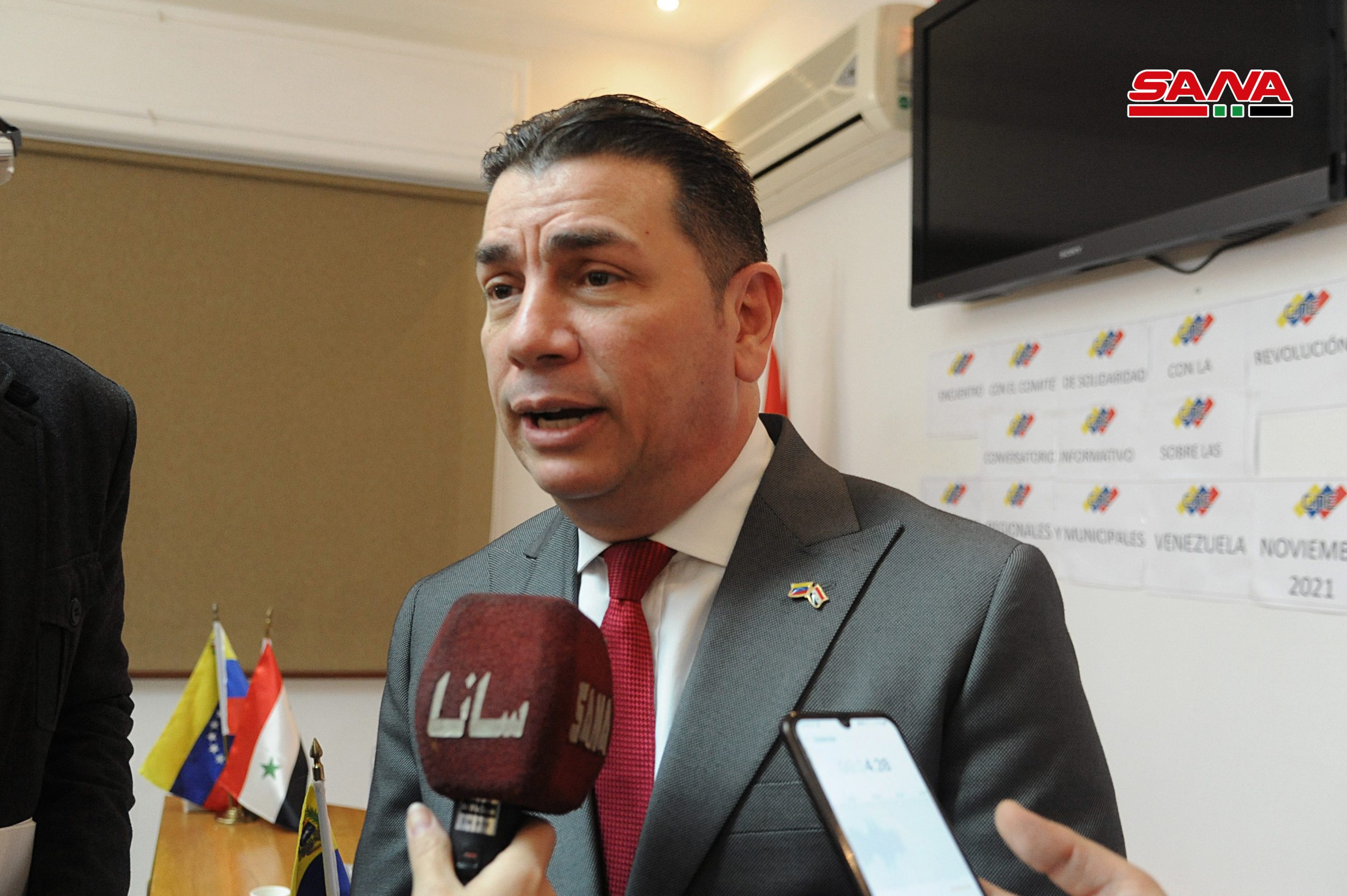 Damas-SANA/Le chargé d’affaires près l’ambassade vénézuélienne, Joaquín Gómez, a affirmé la profondeur des relations d’amitié vénézuélo-syriennes, soulignant la nécessité de la solidarité et de la coopération entre tous les Etats libres.
