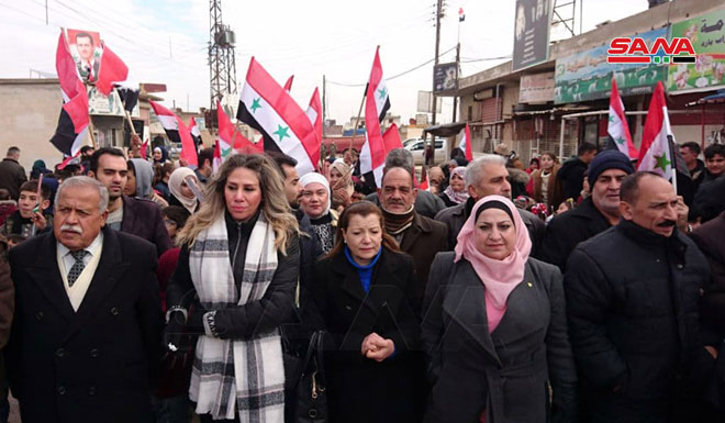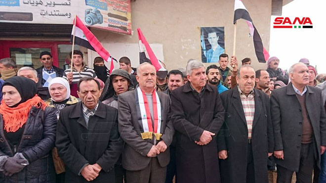 Les participants, qui portaient des drapeaux et des banderoles nationales, ont dénoncé les crimes brutaux commis par les forces d’occupation turques et leurs mercenaires terroristes contre les citoyens syriens, réclamant la fin de leur présence illégale sur les territoires syriens et l’exercice de pression sur l’occupation turque en vue de mettre fin à ses ambitions coloniales dans la région.