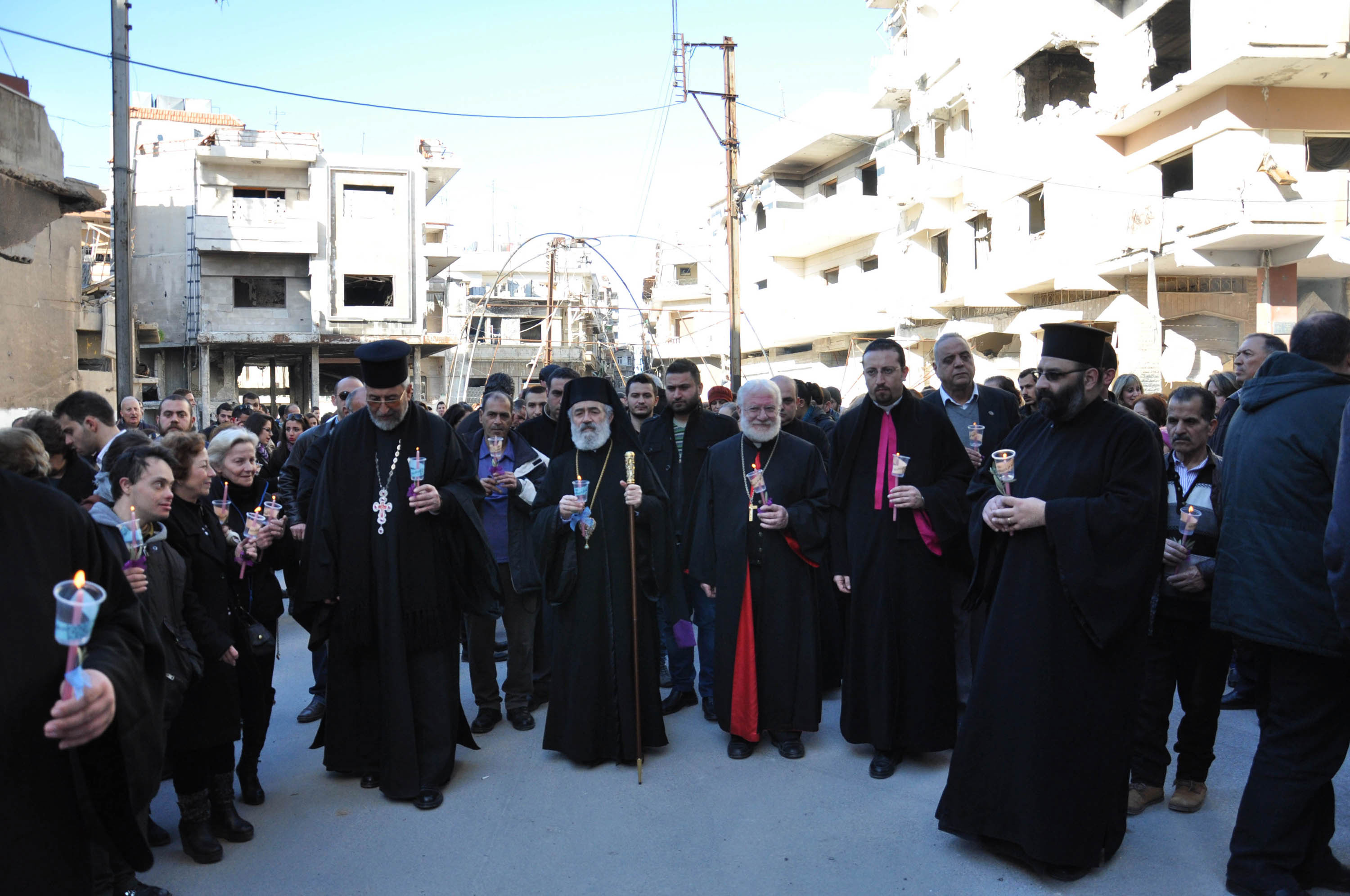 06/02/2015 D.H./ A. Chatta Prière dans le quartier de Hamidiyah à Homs pour le rétablissement de la sécurité et de la stabilité en Syrie 2015-02-06 dima Share tweet