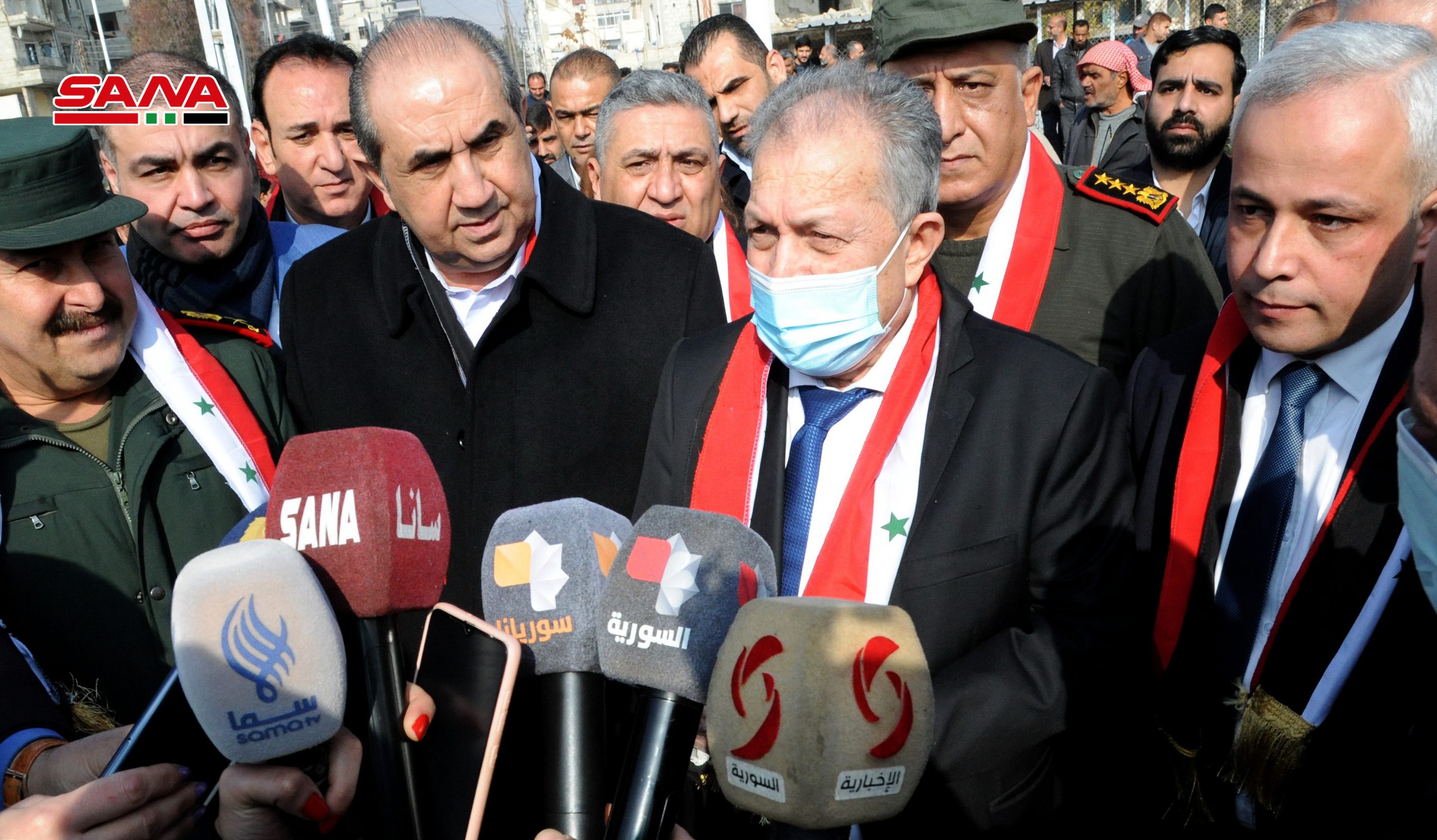 Dans une déclaration qu’il a donnée à la presse, Arnous a affirmé l’importance d’équiper le centre de télécoms par les équipements les plus modernes et de reconnecter les télécoms dans la ville de Douma en vue d’octroyer les services aux habitants après une longue souffrance à cause du terrorisme.