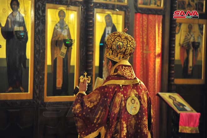 Damas-SANA/ La Représentation de l’Église russe à Damas « l’église Saint Ignace d’Antioche » a organisé aujourd’hui une messe à l’occasion de la fête de Noël.