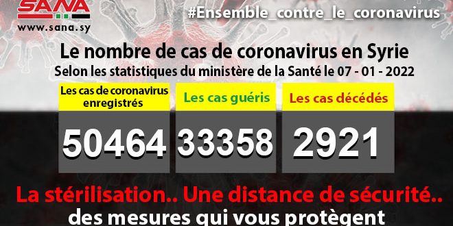 Dans un communiqué, dont une copie est parvenue à SANA, le ministère a fait noter que le bilan des cas de coronavirus enregistrés jusqu’à présent en Syrie avait atteint 50464, dont 33358 cas de guérison et 2921 décès.