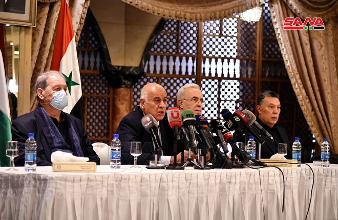 Lors d’une conférence de presse tenue aujourd’hui à l’hôtel Sham Palace à Damas, Rajoub a précisé que sa visite à Damas et la délégation qui l’accompagne constitue un véritable élan pour formuler la situation palestinienne à l’ombre de l’escalade inédite par l’occupation israélienne pour mettre fin à la cause palestinienne.