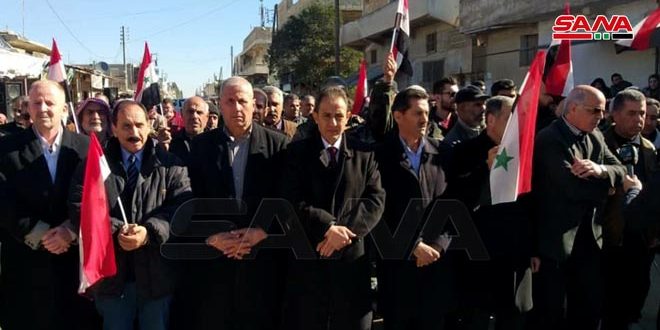 Alep-SANA/Les habitants de la zone de Tal Refaat dans la banlieue nord d’Alep ont réitéré leur rejet de l’occupation turque, de ses mercenaires et de leur crimes commis contre des habitants syriens.
