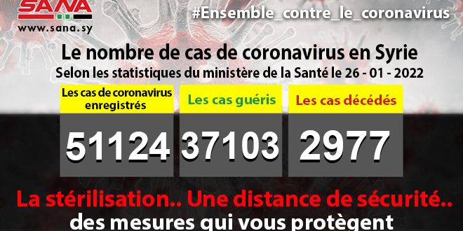 Dans un communiqué, dont une copie est parvenue à SANA, le ministère a fait noter que le bilan des cas de coronavirus enregistrés jusqu’à présent en Syrie avait atteint 51124, dont 37103 cas de guérison et 2977 décès.