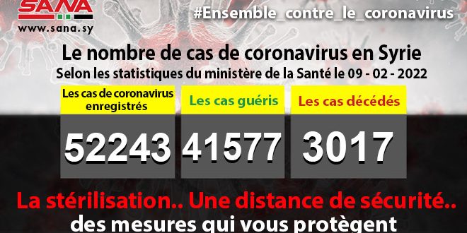 Dans un communiqué, dont une copie est parvenue à SANA, le ministère a fait noter que le bilan des cas de coronavirus enregistrés en Syrie jusqu’à présent avait atteint 52243, dont 41577 cas de guérison et 3017 décès.
