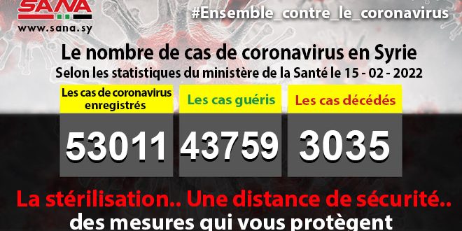 Dans un communiqué, dont une copie est parvenue à SANA, le ministère a fait noter que le bilan des cas de coronavirus enregistrés jusqu’à présent en Syrie avait atteint 53011, dont 43759 cas de guérison et 3035 décès.