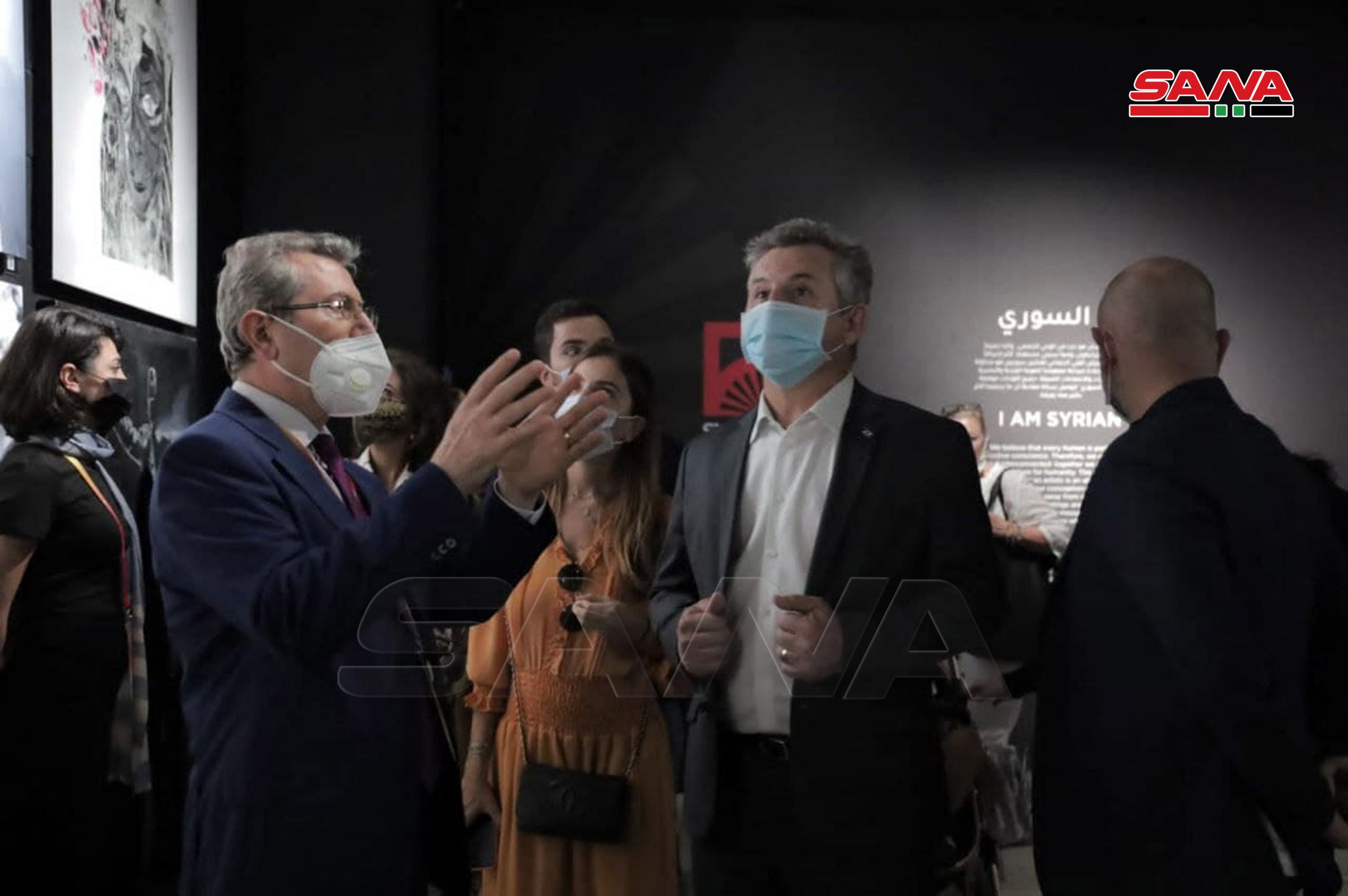Accompagnés de Ghassan Abbas, responsable général du pavillon syrien, et de Khaled Chamaa, directeur du pavillon, les membres de la délégation ont fait une tournée dans les différentes sections du pavillon syrien et s’y sont informés des pièces artistiques et culturelles exposées.