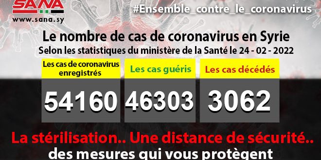 Dans un communiqué, dont une copie est parvenue à SANA, le ministère a fait noter que le bilan des cas de coronavirus enregistrés en Syrie jusqu’à présent avait atteint 54160, dont 46303 cas de guérison et 3062 décès.