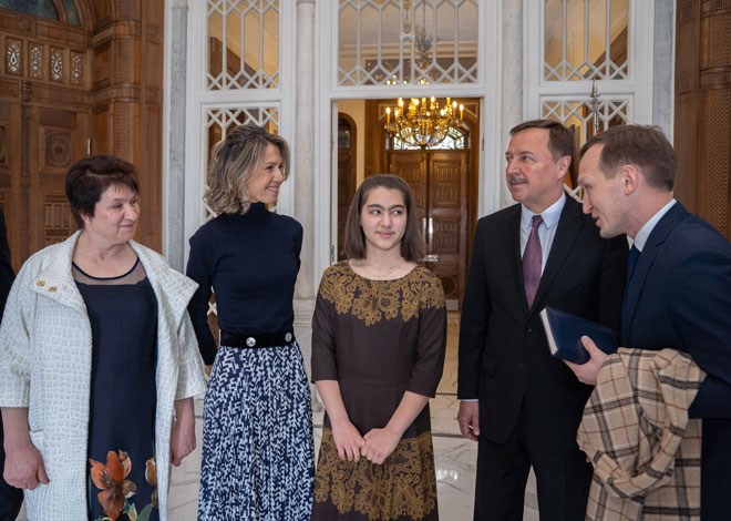 Mme Asma al-Assad reçoit la fille russe Diana Nikitina, le 26-2-2022