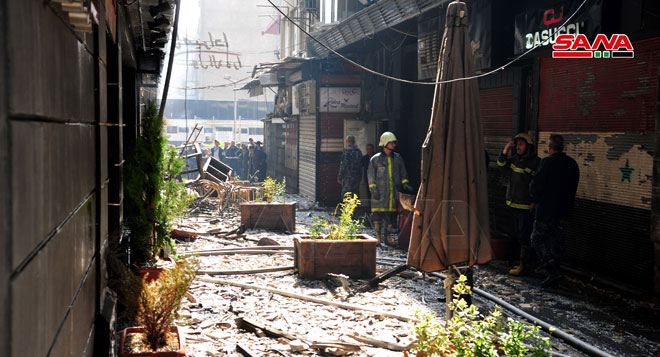 11 décès dans un incendie à (La Mirada Mall) sur la rue de Hamra à Damas, le 1-3-2022
