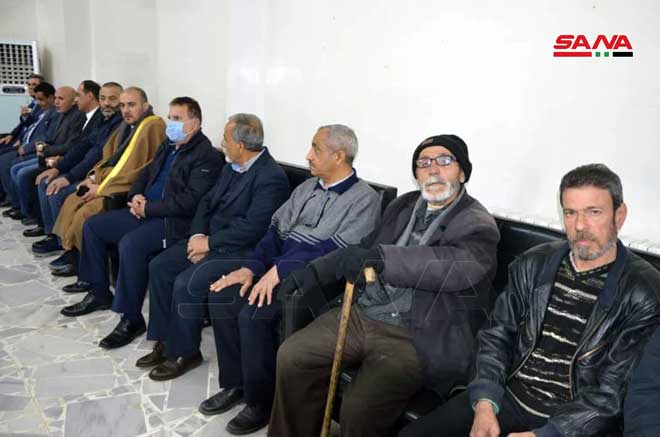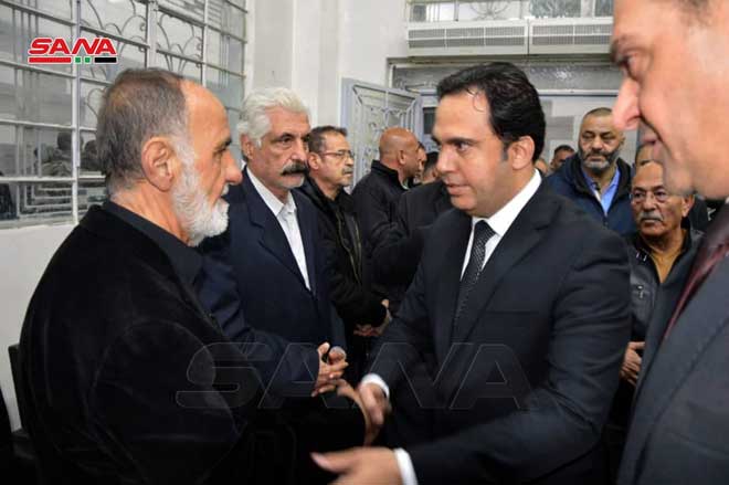 Damas-SANA / Chargé par le président Bachar al-Assad, le gouverneur de Damas, Adel al-Olabi, a présenté aujourd’hui, dans la localité de Mahjah dans la banlieue de Daraa et le quartier de Zein Abdine à Mouhajirine à Damas, les condoléances aux familles des victimes de l’incendie du centre commercial « La Mirada » dans la rue de Hamra à Damas.