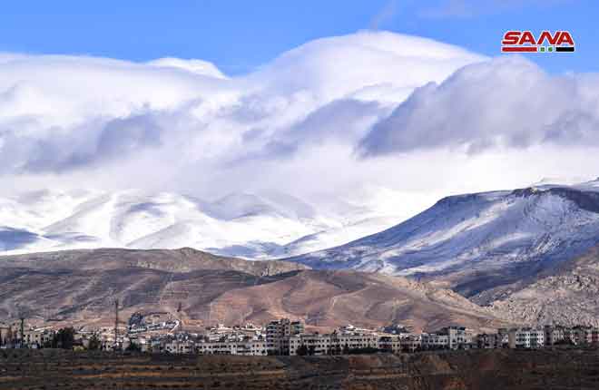 La neige couvre la chaîne de montagnes de l’Anti-Liban