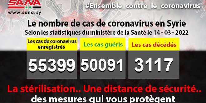 Dans un communiqué, dont une copie est parvenue à SANA, le ministère a fait noter que le bilan des cas de coronavirus enregistrés jusqu’à présent en Syrie avait atteint 55399, dont 50091 cas de guérison et 3117 décès.