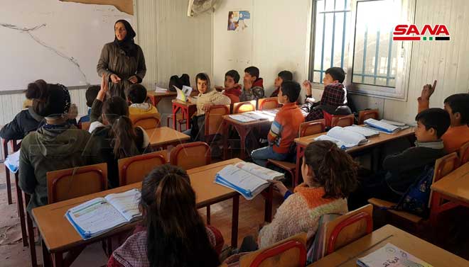 Dans une délation au correspondant de SANA, Reem a dit: « J’ai passé 15 ans à enseigner l’arabe dans les écoles de Ras al-Ain, et je me tiens aujourd’hui devant des élèves de toutes les zones du gouvernorat dans une école préfabriquée qui avait été établie pour résoudre une partie des problèmes de la surpopulation dans les écoles publiques ».