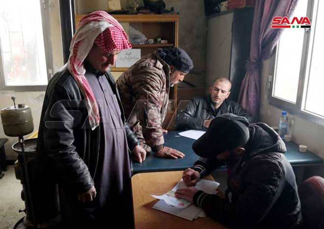 Banlieue de Damas-SANA/A la demande des habitants, le centre de régularisation de la situation dans la localité de Aassal al-Ward dans la banlieue de Damas a continu de recevoir les habitants de la ville et des villages environnants, dont des recherchés civils, des déserteurs militaires et des personnes qui ont échappé aux deux services obligatoires et de réserve, conformément à l’accord proposé par l’Etat.