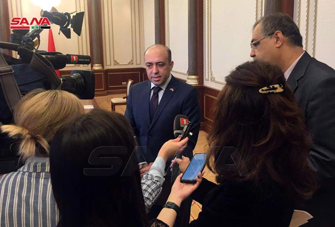 Minsk –SANA/Vladimir Andreichenko, président de la Chambre des représentants de la République du Bélarus a examiné aujourd’hui avec l’ambassadeur de Syrie à Minsk, Mohammad al-Omrani les différents aspects des relations bilatérales syro-biélorusses et les efforts déployés pour les renforcer dans tous les domaines.