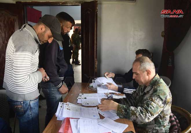 Alep –SANA/Le processus de régularisation de la situation des personnes recherchées, civiles et militaires, s’est poursuivi aujourd’hui dans les deux centres de Hayyan dans la banlieue nord-ouest d’Alep et à Tel Arn dans la banlieue sud-est, au milieu de grand afflux de ceux qui souhaitent le rejoindre.