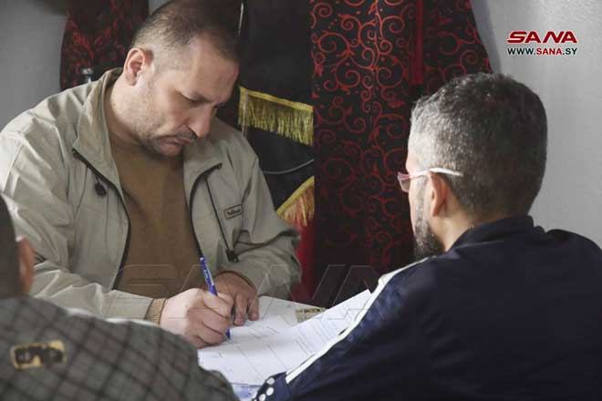 Dans une déclaration qu’il a donnée au correspondant de SANA, un membre du Bureau exécutif du Conseil du Gouvernorat d’Alep, Kumait al-Cheikh, a indiqué que le centre Hayyan avait connu un grand afflux de la pat de ceux voulant régulariser leur situation en raison de sa localisation géographique importante qui relie les zones d’Izaz, Afrin et Samaan dans la banlieue nord du gouvernorat.