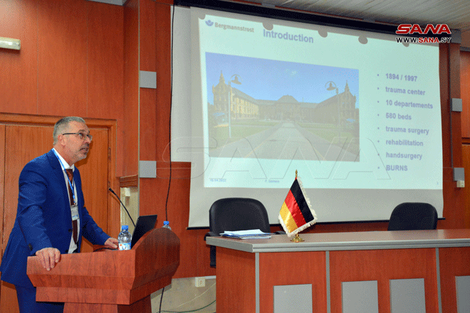 Homs -SANA/Les travaux de la 10e conférence médicale syro-allemande sur la chirurgie plastique et esthétique ont commencé aujourd’hui sur l’amphithéâtre de la Faculté de Médecine à l’Université d’al-Baath à Homs, en coopération avec l’hôpital de chirurgie plastique et de traitement au laser dans la ville de Leipzig en Allemagne.