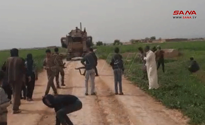 Damas / Les habitants des deux villages de Daadouchiyah et Charko dans la banlieue de Hassaké ont intercepté un convoi des forces d’occupation américaines et l’ont expulsé de la zone.