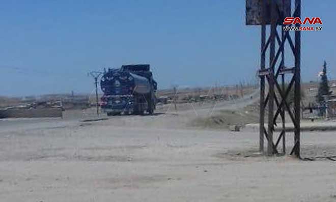 Les habitants des deux villages de Dadouchiyé et Cherko dans la banlieue de Hassaké expulsent, avec le soutien d’un point de contrôle de l’armée arabe syrienne, un convoi des forces d’occupation américaine, le 18-4-2022