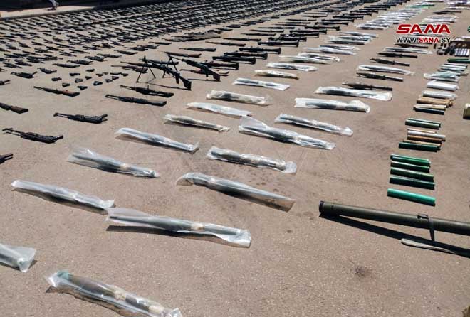 Saisie à Daraa d’armes abandonnées par les terroristes, dont certaines sont de fabrication américaine, le 20-4-2022