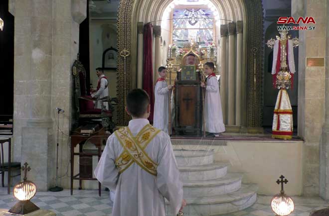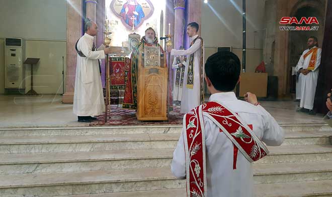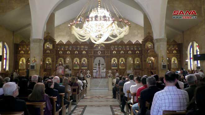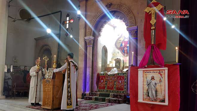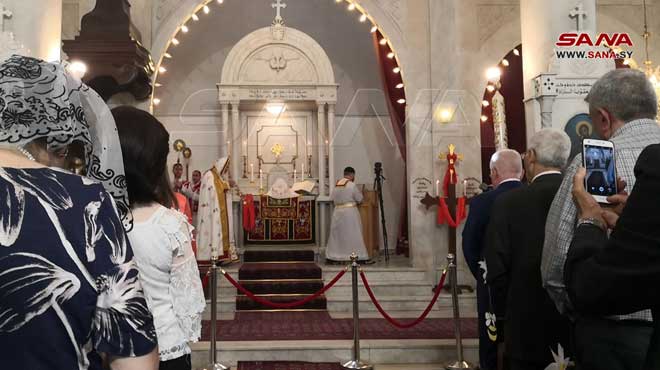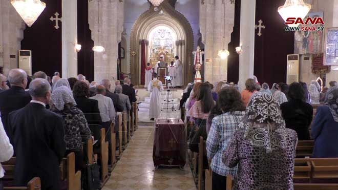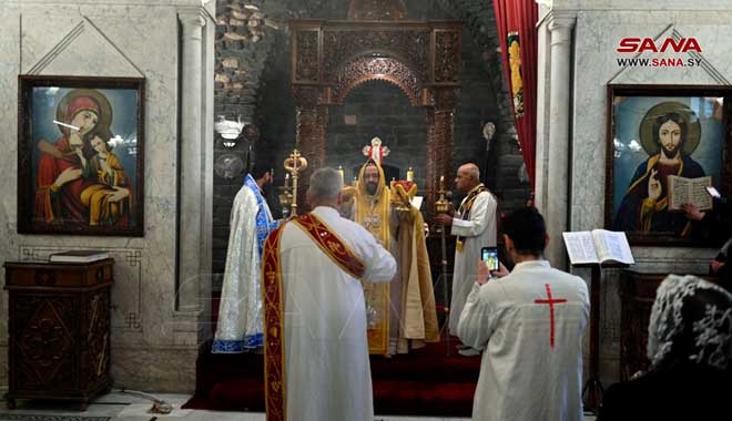 Des prières et messes ont été organisées dans les églises et les lieux de culte dans les Gouvernorats de Lattaquié, Soueidaa, Alep, Hassaké et dans la ville de Qamichli, souhaitant que la sécurité et la stabilité règnent dans toute la Syrie et que l’occupant américain se retire des territoires syriens.