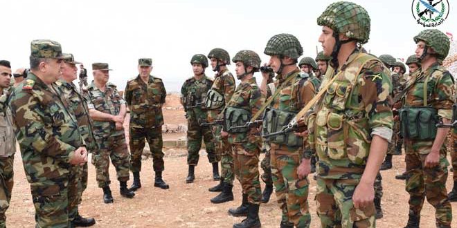Damas-SANA / Sur directives du président Bachar al-Assad, commandant en chef de l’armée et des forces armées, et à l’occasion de l’Aïd al-Fitr, le général Ali Mahmoud Abbas, commandant en chef adjoint de l’armée et des forces armées, ministre de la Défense, accompagné d’un certain nombre d’officiers du commandement général, a visité aujourd’hui une formation militaire, y a rencontré les soldats dans leurs positions et leur a transmis les meilleurs vœux du président al-Assad à l’occasion de l’Aïd et ses souhaits pour le succès dans la prestation de leurs missions nationales dans la défense de la patrie.