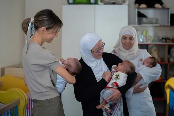 Mme Asma al-Assad souhaite les meilleurs vœux aux enfants résidant dans le complexe « Lahen Hayat » dans la banlieue de Damas, le 3-5-2022