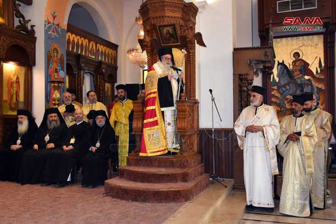 Le Patriarche Yohanna X préside une messe de remerciement dans la cathédrale Saint-Georges à Hama, le 3-5-2022