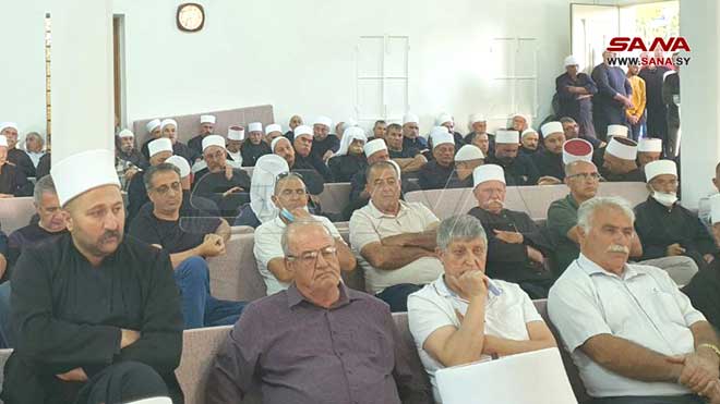 Le président al-Assad fait la prière de l’Aïd al-Fitr dans la mosquée d’al-Hassan à Damas, le 2-5-2022