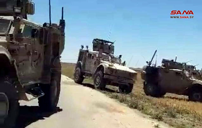 Hassaké-SANA / Les habitants de villages de Salhiyet Harb, Mucheirfa et Tell al-Dhahab dans la banlieue de Qamichli, ont intercepté avec le soutien d’un point de contrôle de l’armée arabe syrienne, un convoi des forces d’occupation américaines qui a tenté de franchir leurs villages et l’ont expulsé de leurs zones.