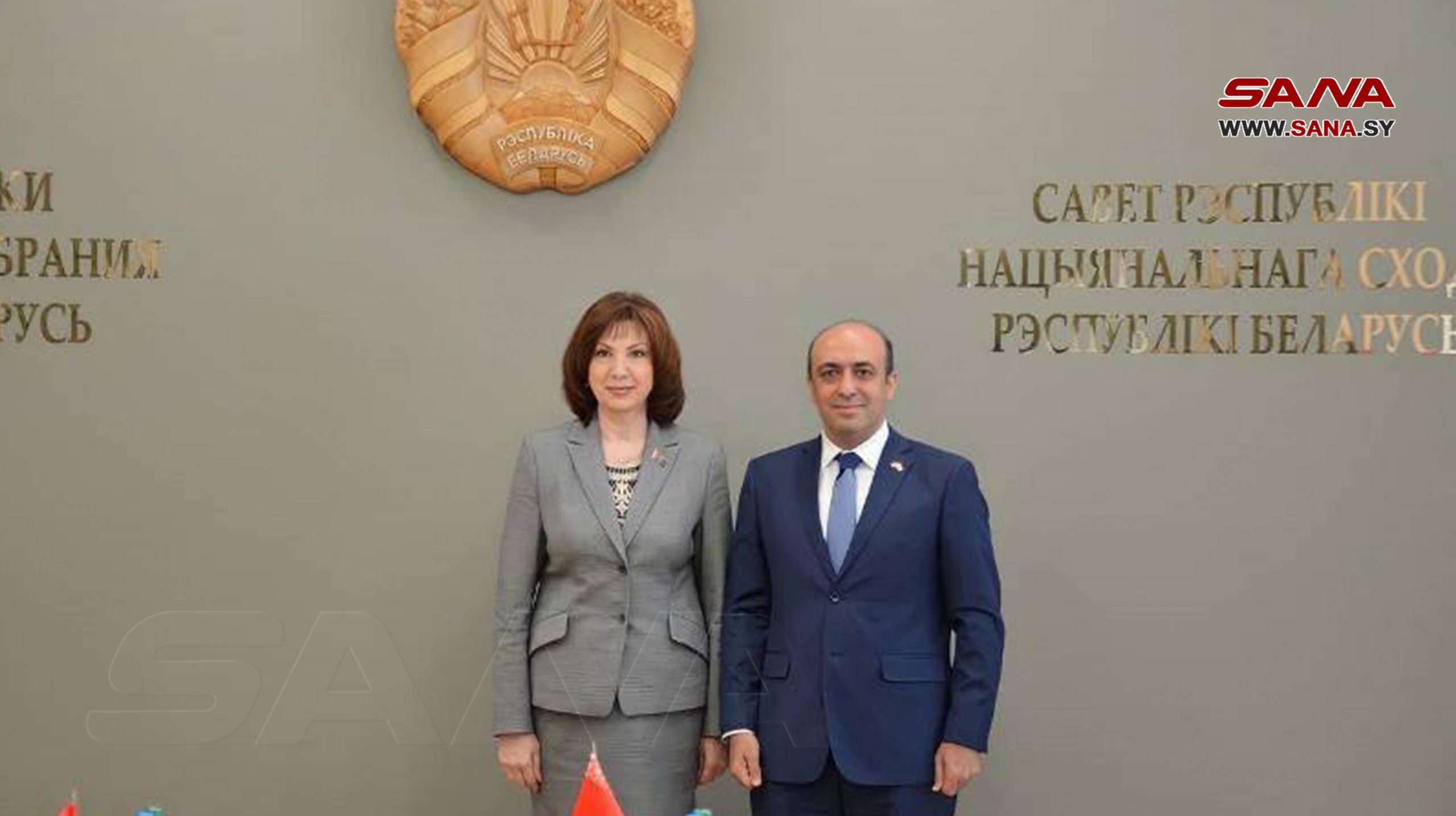 Minsk-SANA / L’ambassadeur de Syrie à Minsk, Mohammad Al-Omrani, a passé en revue avec, Natalya Kochanova, présidente du Conseil de la République à l’Assemblée nationale du Bélarus, les différents côtés des relations syro-biélorusses, y compris les relations parlementaires.