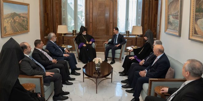 Damas – SANA / Le président Bachar al-Assad a reçu aujourd’hui Mgr Aram I Keshishian, catholicos de l’Eglise arménienne de la Grande Maison de Cilicie et la délégation qui l’accompagne.
