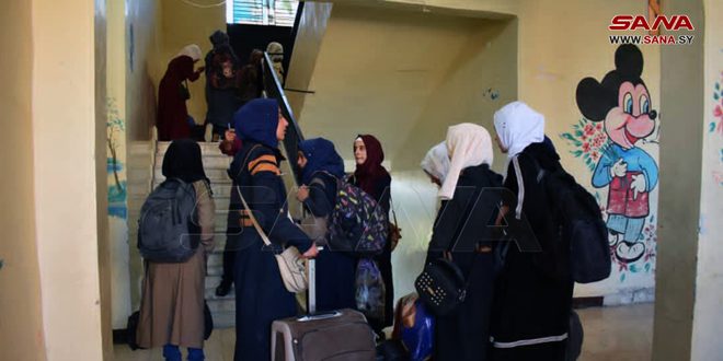 Alep-SANA / 1725 élèves ont arrivés ce soir à Alep, venant des zones contrôlées par les réseaux terroristes, via le corridor ‘’al-Taiyha’’ pour passer les examens du brevet et du bac, en coopération avec des parties concernées dans le gouvernorat.