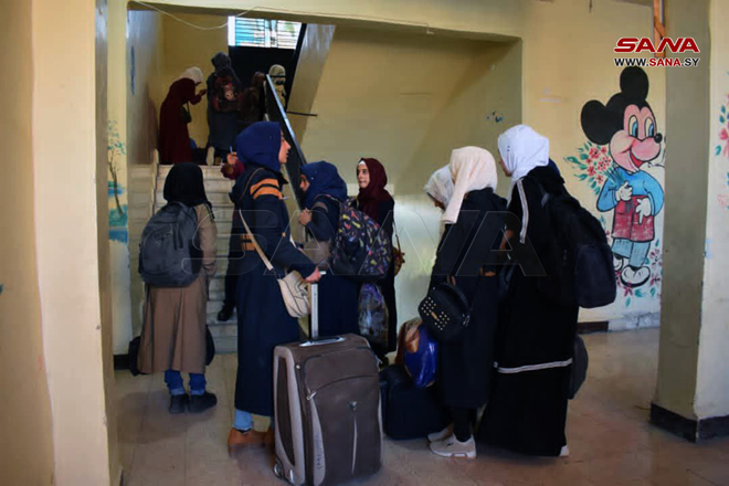 Arrivée du premier groupe d’élèves venant des zones contrôlées par les réseaux terroristes au gouvernorat d’Alep, le 25-05-2022