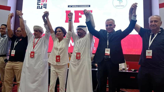 Mascate-SANA/Avec la participation d’une délégation de l’Union des Journalistes syriens, les travaux de la 31e Conférence de la Fédération internationale des journalistes /Congrès/ ont démarré aujourd’hui dans la capitale omanaise Mascate.