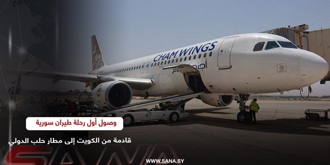 04/06/2022 Atterrissage à l’aéroport international d’Alep du 1er vol qui est venu du Koweït après une rupture d’environ 10 ans 2022-06-04 admin Share tweet