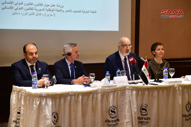 Lors de l’ouverture de l’atelier, le vice-ministre des Affaires étrangères et des Expatriés, président du Comité national syrien du droit international humanitaire, Bachar Jaafari, a affirmé que la Syrie est l’un des Etats pionniers au monde dans le domaine de la sensibilisation au droit international humanitaire.