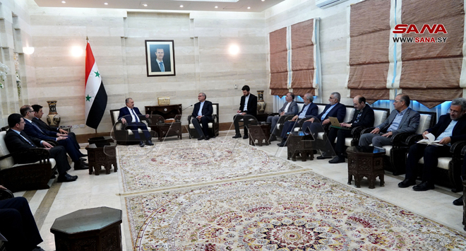 Damas -SANA/Le président du Conseil des Ministres, Hussein Arnous, a examiné aujourd’hui avec le ministre iranien de la Santé, du Traitement et de l’Éducation médicale, Bahram Eynollahi, et la délégation qui l’accompagne, l’élargissement de la coopération entre la Syrie et l’Iran dans les domaines des industries pharmaceutiques, des équipements médicaux et de la recherche scientifique et touristique et l’échange d’étudiants et de professeurs au niveau des universités et des centres de recherche.