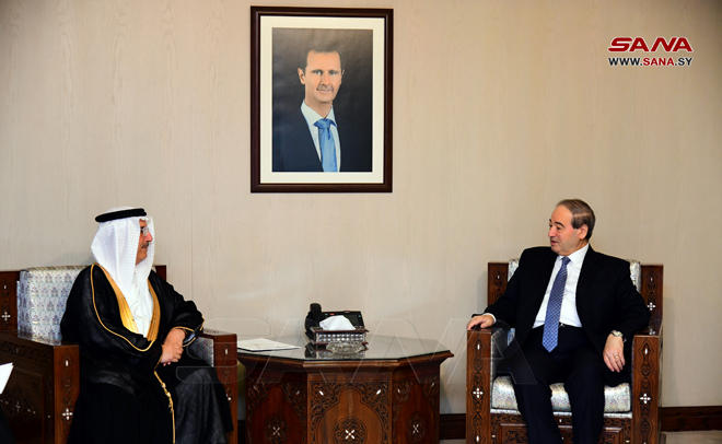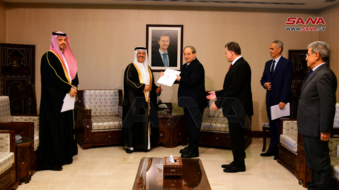 Damas-SANA/Le Ministre des Affaires étrangères et des Expatriés, Fayçal Miqdad, a reçu aujourd’hui une copie des lettres de créance de l’ambassadeur extraordinaire et plénipotentiaire du Bahreïn auprès de la Syrie, Wahid Mubarak Sayyar.